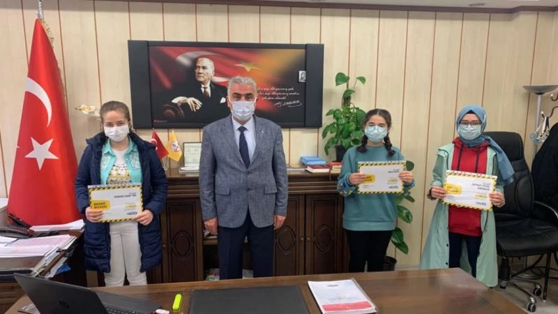 İlçe Milli Eğitim Müdürü İdris Makineci, yapılan LGS deneme sınavında birinci olan Mehmet Akif Ersoy Ortaokulu’ndan Sündüs Sude Tak, ikinci olan Meliha Rıfat Göbel Ortaokulu’ndan Sıla Uzar ve üçüncü olan Atatürk Ortaokulu’ndan Zeynep Zülal Karakuş’u tebrik ederek başarı belgelerini ve hediye çeklerini taktim etti.