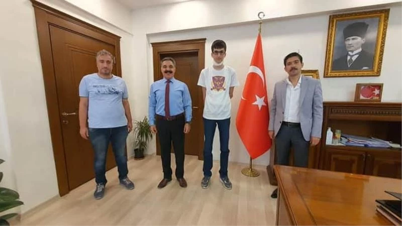 Liselere Geçiş Sisteminde (LGS) Diyarbakır’ın Ergani birincisi olan Mustafa Oral, Kaymakam ve Belediye Başkanı Abdulselam Öztürk’ü ziyaret etti.