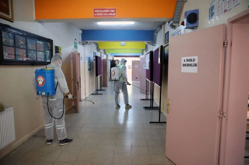 Menteşe Belediyesi ekipleri tarafından okulların bahçeleri, sınıflar, tuvaletler ve koridorların dezenfeksiyon işlemleri yapılıyor. Pandemi sürecinin başından bu yana dezenfeksiyon işlemine hız verdiklerini ifade eden Menteşe Belediye Başkanı Bahattin Gümüş, “Menteşe Belediyesi olarak okullarımızın düzenli olarak bakım, onarım, bahçe düzenlemesi ve temizliği işlemlerini yapıyorduk. Pandemi sürecinin başından bu yana da düzenli olarak dezenfeksiyon işlemlerini yaptık. Hafta sonu LGS sınavı var. Ekiplerimiz LGS sınavı öncesinde çocuklarımızın daha steril ve temiz bir ortamda sınava girmelerini sağlamak için dezenfeksiyon işlemlerine devam etti. Sınava girecek tüm adaylara şimdiden başarılar diliyorum” dedi.