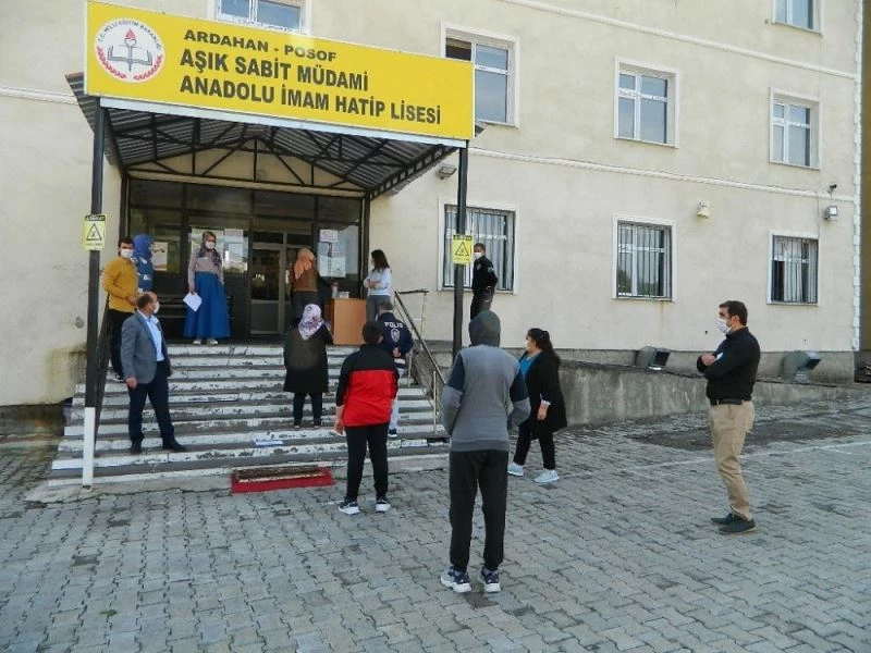 Posof ilçe merkezinde Aşık Sabit Müdami Anadolu İmam Hatip Lisesi, Halit Paşa orta okulu ve Süngülü köyünde olmak üzere sadece üç okulda imtihana giren öğrenciler kurallara uyarak mesafeyi, maskeyi ve diğer hijyen kurallarına dikkat ederek sınıflara alındılar.