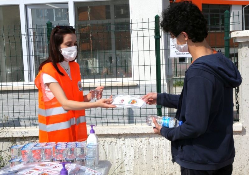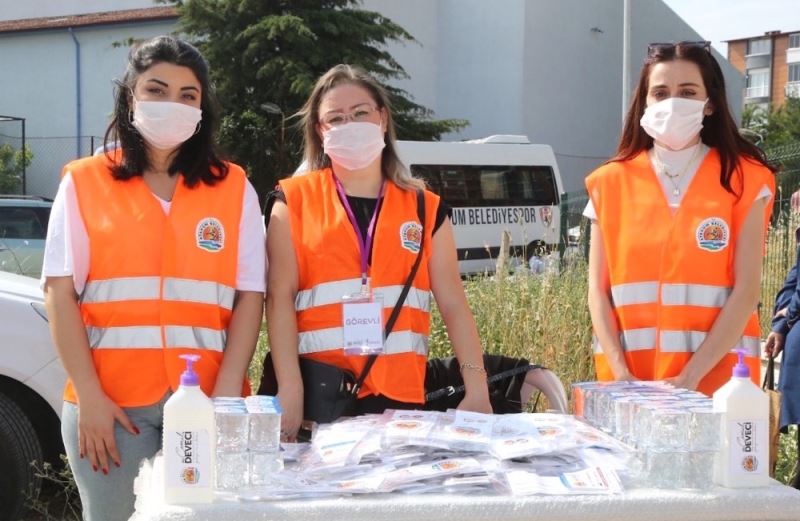 Atakum’da sınav merkezi olarak belirlenen 35 okulun girişine stant kuran belediye ekipleri, öğrencilere Atakum Belediyesi Kültür Evleri’nde kadın dayanışması üyelerince üretilen yaklaşık 4 bin adet yıkanabilir maskenin yanı sıra bardak su dağıttı, el dezenfektanı kullanmalarını sağladı.