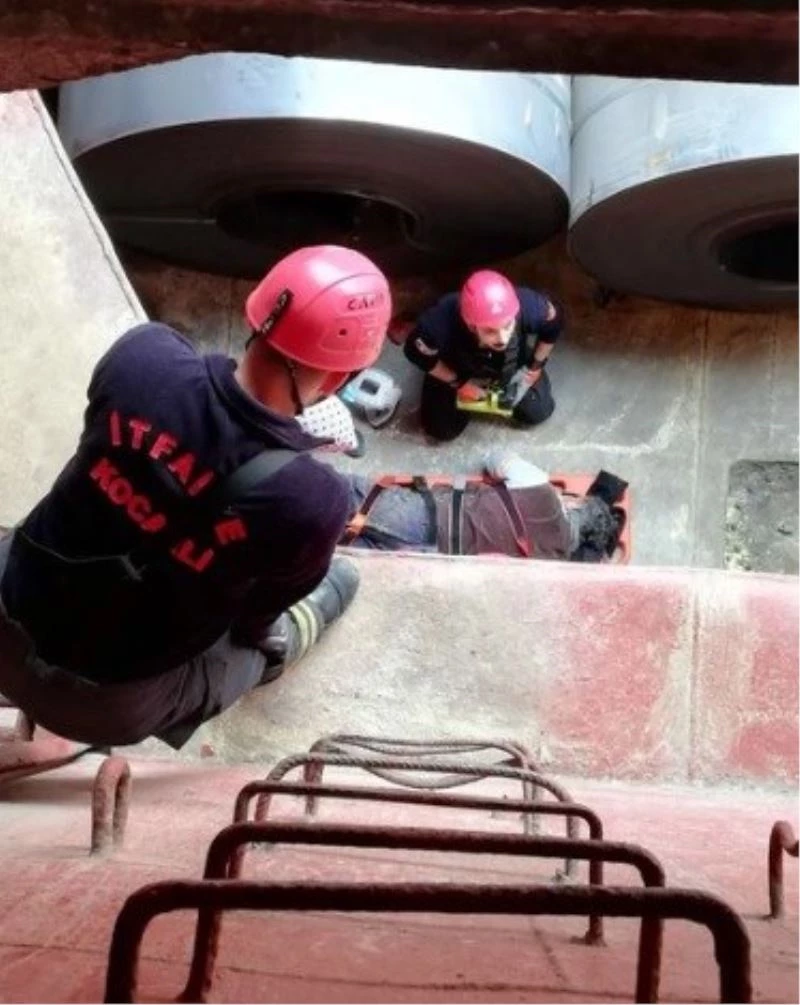 Kocaeli’de bir limanda iş kazası geçirip sıkışan işçi itfaiye erleri tarafından kurtarıldı. Asma iskeleyle yukarı çıkarılan işçi, sağlık ekiplerine teslim edilip hastaneye kaldırıldı.