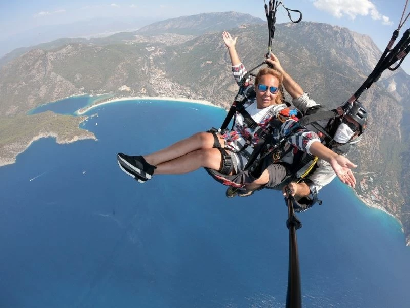 Muğla’nın Fethiye ilçesi tatil için gelen İngiltere Liverpool Belediye Başkanı Anna Rothery, Fethiye Belediye Başkanı Alim Karaca ile birlikte Babadağ’dan yamaç paraşütüyle uçuş yaptı.