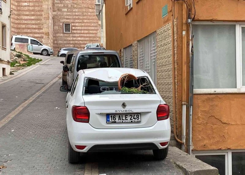 Çekirge mahallesinde bir çay bahçesinin demir tentesi havalanıp cadde üzerindeki bir aracın üzerine düştü. Camları kırılan otomobilin tavanı tente sebebiyle çöktü. Şehrin özellikle doğum kesimlerinde etkili olan fırtına çok sayıda evin çatısını uçurdu.