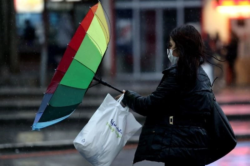 Bursa’da etkili olan lodos ve yağmur, vatandaşlara zor ânlar yaşattı. Rüzgârın 80 kilometreye hıza ulaştığı ânlarda şemsiyeler ters dönerken, insanlar yürümekte zorlandı.
