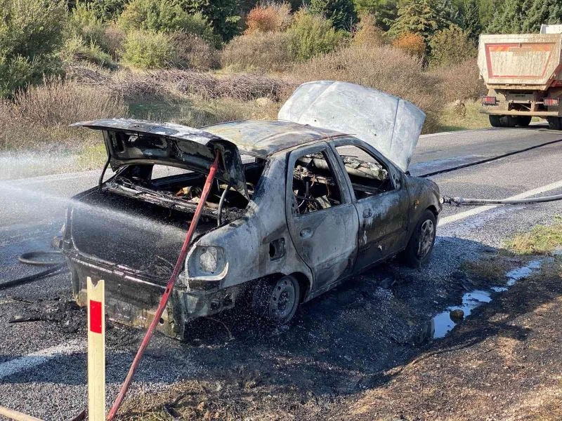 Manisa’nın Saruhanlı ilçesinde seyir halindeyken patlama sesi üzerine aracını durduran sürücü, alevlerin yükseldiğini görünce itfaiyeye haber verdi. Olay yerine gelen itfaiye ekipleri tarafından araç söndürülürken yangının LPG tankından çıktığı tahmin ediliyor.