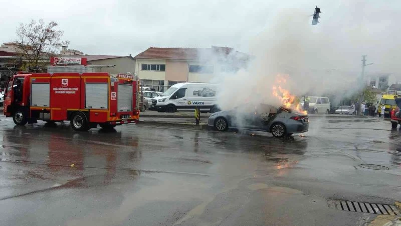 Olay, Orhaniye Mahallesi Menteşe Kaymakamlığı önünde öğle saatlerinde meydana geldi. Edinilen bilgiye göre, seyir halindeki 48 AAN 776 plakalı otomobilde yangın çıktı. Otomobilden alevlerin yükseldiğini gören vatandaşlar durumu 112 Acil Çağrı Merkezi’ne bildirdi. İhbar üzerine bölgeye itfaiye, polis ve sağlık ekipleri sevk edildi. Kısa sürede olay yerine gelen Muğla Büyükşehir Belediyesi Menteşe İtfaiye Grup Amirliği ekipleri yangına müdahale ederek söndürdü. Yangının LPG kaçağından çıktığı iddia edilirken, vücudunda hafif yanıklar meydana gelen araçtaki A.Y.T. ve B.A. ambulansla hastaneye kaldırıldı. Hastanede tedavi altına alınan yaralıların hayati tehlikelerinin bulunmadığı öğrenildi.