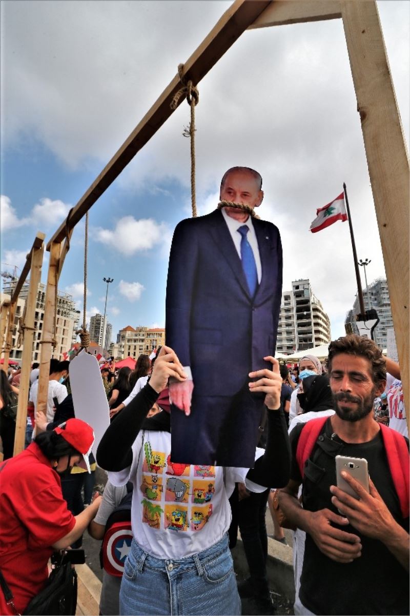Lübnan’ın başkenti Beyrut, 4 Ağustos’ta limanın 12 numaralı deposunda bulunan 2 bin 750 ton amonyum nitratın patlaması sonucu meydana gelen facianın ardından yaralarını sarmaya çalışıyor. Ekonomik krizin giderek derinleştiği ülkede protestocular bu kez patlamada ihmali bulunduğu gerekçesiyle hükümeti suçlarken, gösterilere de devam ediyor. Başkent Beyrut’ta devam eden gösterilerde protestocular Şehitler Meydanı’nda bir araya gelerek hükümetin istifasını talep etti. Öfkeli protestocular, politikacılar için meydanın ortasına temsili dar ağacı kurdu.