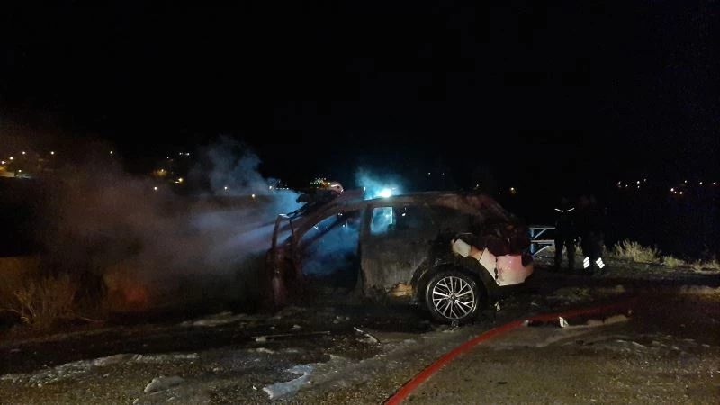 Çorum’da bilinmeyen bir nedenden dolayı alev alan lüks cip tamamen yandı.