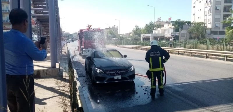 Antalya’nın Serik ilçesinde lüks bir otomobil seyir halindeyken birdenbire alev aldı. Büyük korku yaşayan otomobilin sürücüsü ise aracı terk etti.