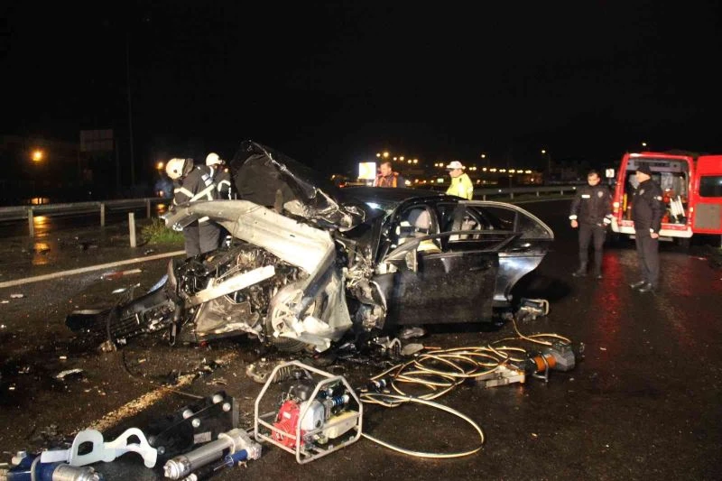Kocaeli’de lüks otomobilin TEM Otoyolu’nda tabelaya çarpması neticesinde meydana gelen kazada 2 kişi araç içinde sıkıştı. Yaralılar itfaiye ekipleri tarafından kurtarılırken, otomobil ise hurdaya döndü.