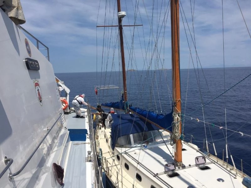 75 mülteciden 5’ini yerli turist gibi giydiren insan kaçakçılarının yelkenli tekneyi mavi yolculuğa çıkmış gibi gösterdiği belirlendi. 5 mülteci Sahil Güvenlik ekiplerinin sorularına Arapça cevap verince yelkenli teknenin arandığı öğrenildi.