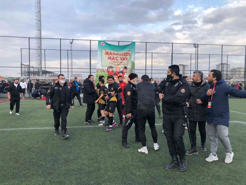 Kayseri Süper Amatör Küme’de şampiyonluk mücadelesi veren iki ekibin maçında bitiş düdüğüyle saha karıştı. Müsabaka karşılıklı atılan goller ile 2-2 sona erdi. Maçın bitiş düdüğü sonrasında Kayserigücü takımı teknik heyet ve oyuncuları, hakeme yoğun itirazlarda bulundu. Bu arada Kayserigücü takımından Eren Torbalı, kendisine hakaret ettiğini söylediği kişiye tepki gösterirken futbol sahası karıştı. Emniyet güçleri araya girerek olayları yatıştırmaya çalıştı.