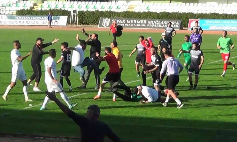 Bölgesel Amatör Lig play-out maçında oynanan Muğlaspor-Ortaca Belediyespor maçının bitiş düdüğü ile saha karıştı.