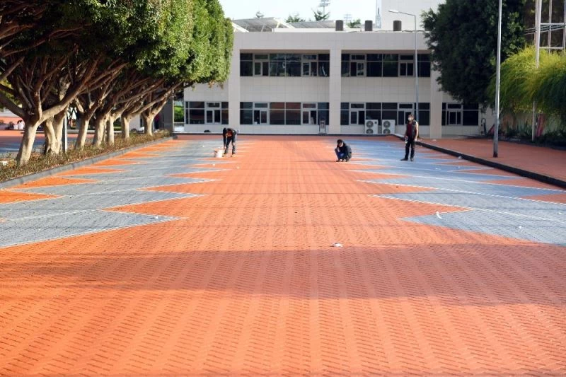 Mersin Büyükşehir Belediyesi ekipleri, zemin iyileştirme ve çevre düzenlemesi ile Macit Özcan Spor Kompleksini yeniledi. Teknik ekipler, 5 bin 300 metrekare alana dekoratif desenli renkli sıcak asfalt döktü. Park ve Bahçeler Dairesi ekipleri ise genel temizlik ve budama işlemlerinin yanı sıra çiçek dikimi gerçekleştirdi.
