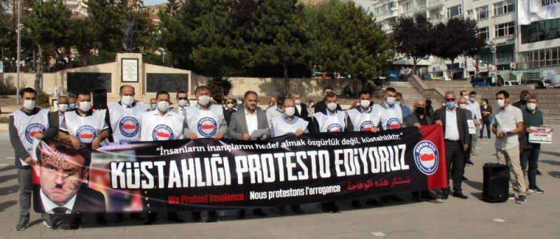 Yozgat Cumhuriyet Meydanında toplanan sendika üyeleri “İnsanların inançlarını hedef almak özgürlük değil küstahlıktık, küstahlığı protesto ediyoruz” yazılı pankart açtı. Basın açıklamasını Memur-Sen Yozgat Şube Başkanı Kenan Şerefli okudu. Okunan metinde, “Sömürgenin merkezlerinden olan Fransa Cumhurbaşkanı Emanuel Macron, son birkaç zamandır cinnete esir politikalarına bir yenisini ekleyerek, insanlığa rahmet olarak gönderilen, hatem-ül enbiya Hz. Muhammed Mustafa’ya ilişkin sözde karikatürlere fikir özgürlüğü adına sahip çıkması ve Müslümanları aşağılamasını tel’in etmek için burada toplandık. Avrupa’da birçok ülkede bir cinnet hali yaşanıyor. Yabancı düşmanlığı, ırkçılık ve İslamofobi, o meşhur Avrupa aklını esir almış, çoğulculuk söylemlerinin sırçası dökülmüş ve nihayet aşırı sağ siyasetin ürettiği politikalar siyaseti belirler hale gelmiştir. Almanya’da cami baskını, Hollanda’da Gert Wilders’in terör ve şiddet içeren konuşmaları ve nihayet Macron’un, ifade hürriyeti arkasına sığınarak, İslam’a ve peygamberine saldıran unsurlara sahip çıkması cinnetin boyutlarını göstermektedir. Burada bir parantezle bir başka tepkimizi de özellikle ifade edelim. Kutsal emanetlerimizin mekanı olmakla yetinip, kutsala sahip çıkmayı beceremeyen Suudi Arabistan yönetimini ve onunla aynı kulvarda bulunmaya teşne Birleşik Arap Emirliklerini de tarih ve bizler not ediyoruz. Dine ve Kutlu Nebi’ye dönük hakaret faillerinin kuyruğuna takılan ülkelerin ve yöneticilerin, emperyalist taşeronluğu ve kapitalistlerin sömürü baronluğu sıfatlarının sona ermesinin de yakın olduğuna inanıyoruz” dedi.