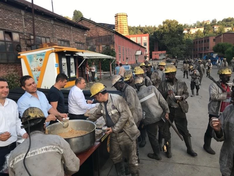Genel Maden İşçileri Sendikası (GMİS) Mali Sekreteri Volkan Yıldız, Türkiye Taşkömürü Kurumu (TTK) Karadon Müessesesinde çalışan maden işçilerine aşure dağıttı.