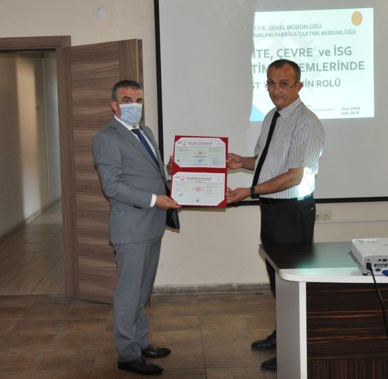 Türkiye Taşkömürü Kurumu Genel Müdürlüğü Maden Makinaları Fabrika İşletme Müdürlüğü, “TSE 14001 Çeve Yönetim Sistemi" belgesi aldı.