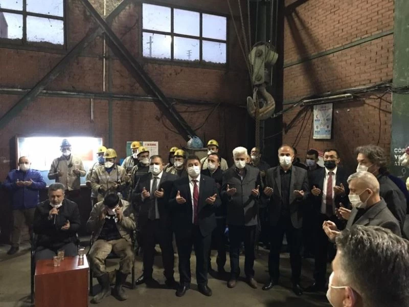 Şehit madenci için okunan Kur-an sonrasında maden şehidi Soner Dağlıoğlu ve tüm maden şehitleri için yapılan duaların ardından madenciler üretim için ocağa indiler.