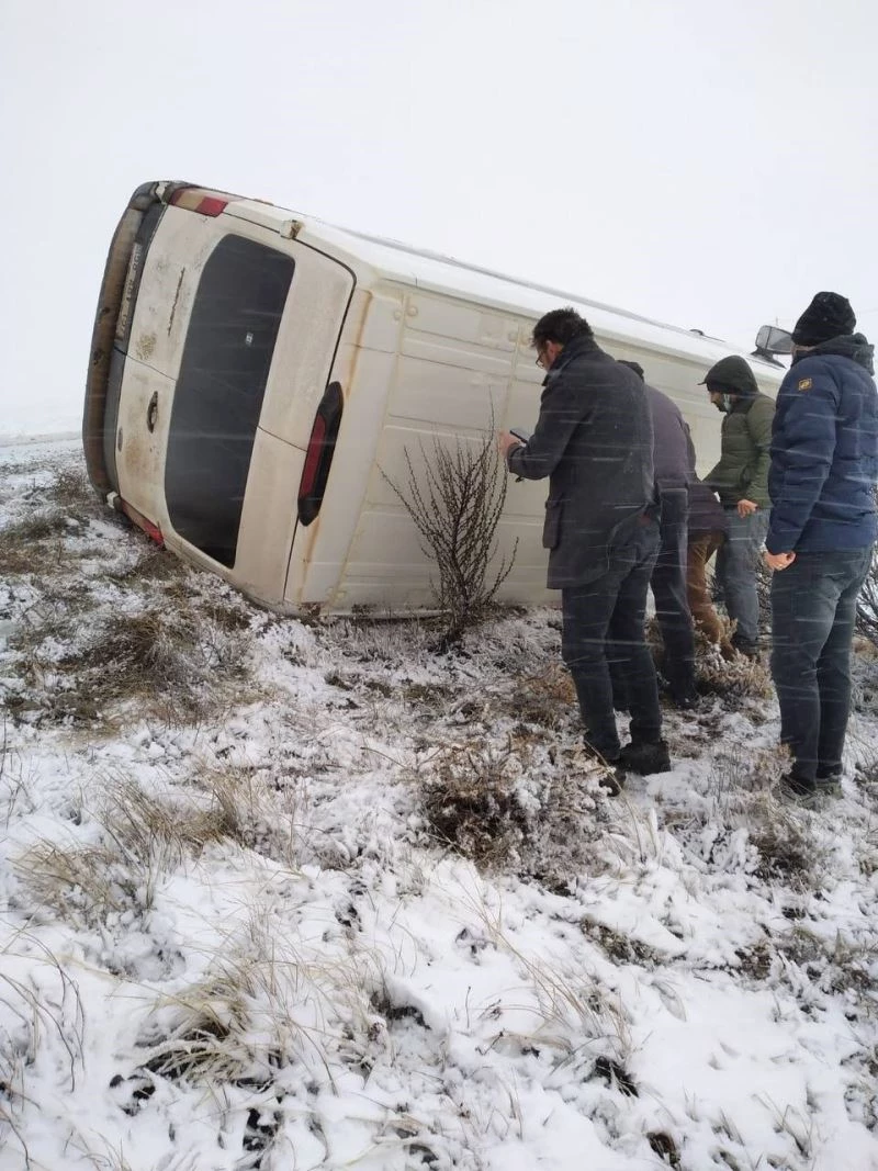 Sivas’ın Kangal ilçesinde maden firmasına işçi taşıyan servis yoldan çıkarak takla attı, serviste bulunan 5 işçi yaralandı.
