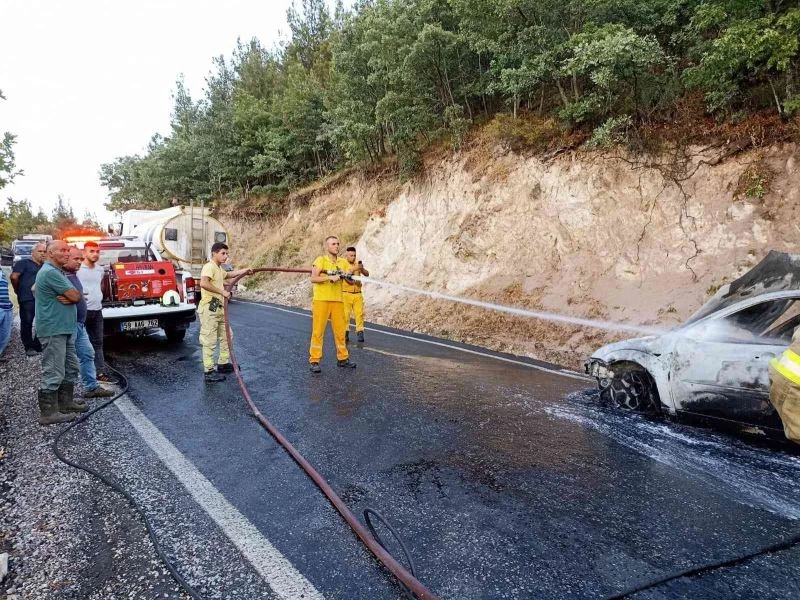 Balıkesir’in Havran ilçesinde Madra Dağları eteklerinde, ormanlık alanda yanarak alev topuna dönen otomobile Edremit Orman İşletme Müdürlüğü ve Havran İtfaiye Grup Amirliği ekipleri müdahale etti. Yangın ormanlık alana sıçramadan söndürüldü.