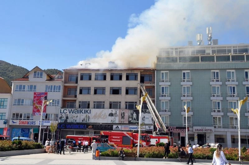 Konya’nın Akşehir ilçesinde 5 katlı bir giyim mağazasının deposunda çıkan yangın, alevlerin yükseldiği havalandırma boşluğundan binanın çatısına sıçradı. Binanın yanında bulunan kurs merkezindeki öğrenci ve öğretmenler tahliye edilirken, yangın itfaiye tarafından güçlükle söndürüldü.