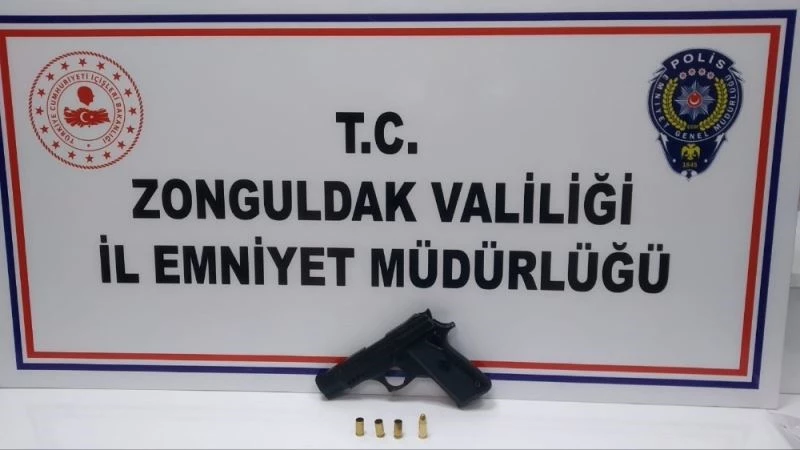 Edinilen bilgiye göre Zonguldak Fener Mahallesi’nde akşam saatlerinde silah seslerinin duyulması vatandaşlar polis ekiplerine ihbarda bulundu. İhbar üzerine bölgeye giden ekipler bölgede yaptığı araştırmada polis ekiplerini fark eden S.U isimli şahıs elinde bulunan tabancayı kayalıklara attı. Durumu fark eden polisler şahsı yakalayarak ruhsatsız tabanca bulunarak el konuldu. Ekipler tarafından S.U. hakkında Genel Güvenliği Kasten Tehlikeye Sokmak ve 6136 Sayılı Kanuna Muhalefet Suçlarından adli işlem yapıldı.