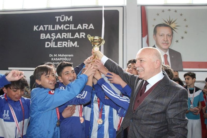 Büyükşehir Belediye Başkanı Mehmet Sekmen, Oltu Belediye Başkanı Necmettin Taşçı, Gençlik ve Spor İl Müdürü Birdal Öztürk ile diğer davetliler ilk dördü giren takımların madalya ve kupalarını verdi.