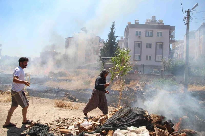 Antalya’da otluk alanda çıkan yangın evleri tehdit etti. Yangını söndürmek için vatandaşlar hortumlarla, çocuklar ise dal parçaları ile mücadele etti.