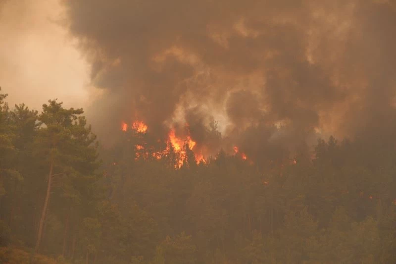 Ekipler yangına havadan ve karadan müdahale etti. Kontrol altına alınamayan yangın Çardak Mahallesi’ne doğru ilerlemeye devam ediyor.