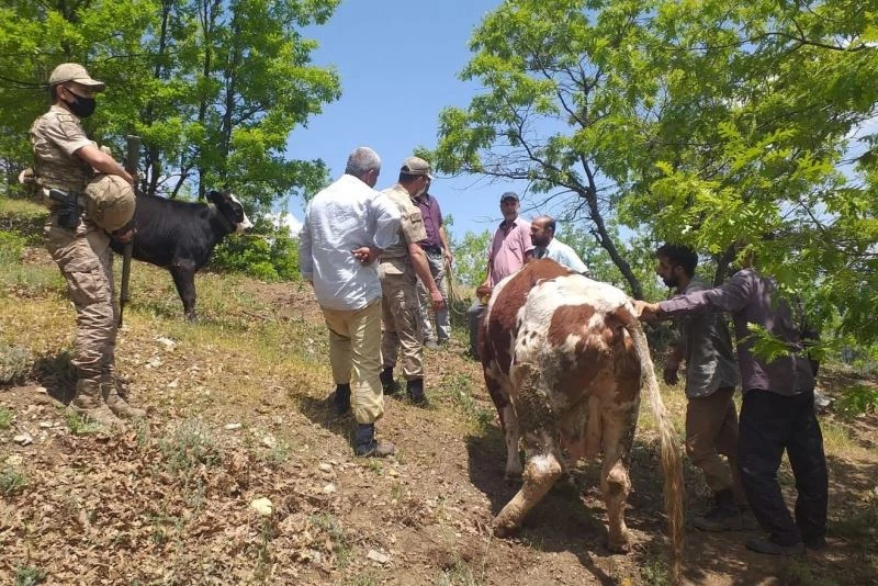 Adıyaman’ın Gerger ilçesinde bir dere yatağına düşerek mahsur kalan ineği jandarma ekipleri kurtardı.
