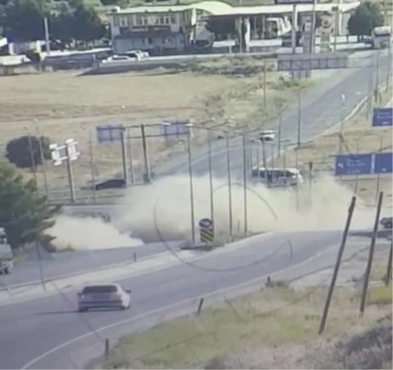 Kaza anı güvenlik kameralarına saniye saniye yansıdı. Görüntülerde 35 plakalı otomobilin metrelerce geriden selektör yaparak geldiği, makas attığı an diğer araca çarptığı ve her iki aracın savrulduğu, her yerin tozla kaplandığı görüldü.