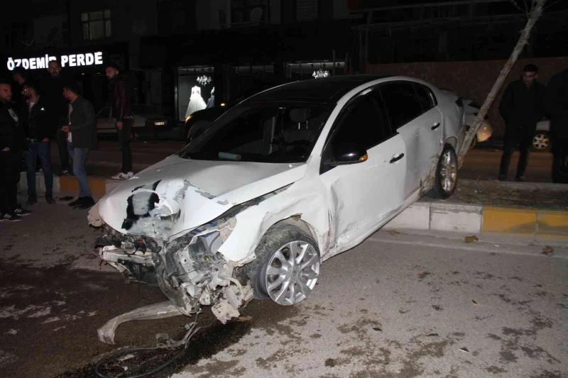 Elazığ’da makas atan sürücü, önce polis arabasına ardından aydınlatma direğine çarpıp refüje çıktı. Kazada 2 kişi yaralandı.
