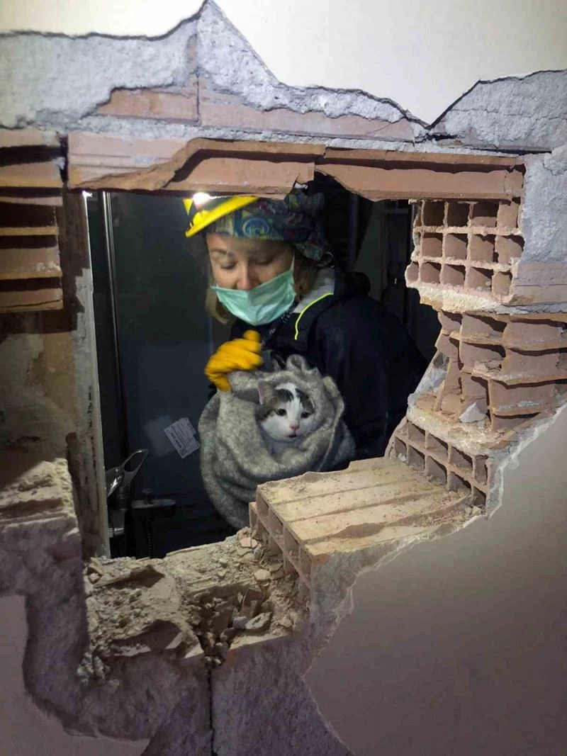 Marmaris Arama Kurtarma ekibi Hatay’da bir enkazdan gelen kedi sesine doğru gitmesinin ardından kırılan merdiven ve duvarlardan geçerek içeride ağlayan hayvanı kurtararak bir kafese koyup bölgede faaliyet gösteren gönüllü veterinerlere teslim ettiler. Daha önce de Gaziantep Islahiye’de hem insan, hem de hayvan kurtaran dernek üyeleri "Can candır, bu kedicik de bize moral oldu. Kurtardığımız her hayat için göze aldığımız tehlikelerden korkmuyoruz" şeklinde konuştular.