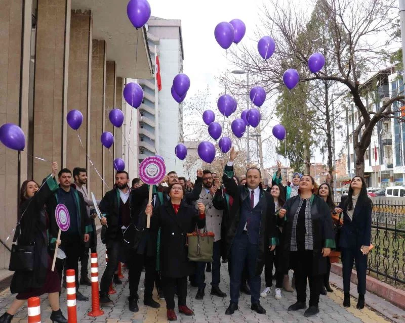 Basın açıklamasının ardından gökyüzüne mor renkli balonlar bırakıldı.