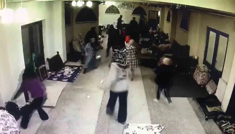 Malatya’da dün yaşanan 5.6’lık depreme camide yakalanan vatandaşların panik anları, güvenlik kamerasına saniye saniye yansıdı.