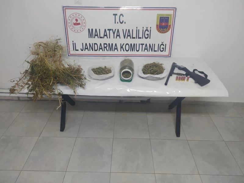 Edinilen bilgiye göre, Malatya İl Jandarma Komutanlığı KOM Şube Müdürlüğü ve Battalgazi İlçe Jandarma Komutanlığınca yapılan istihbari çalışmalar neticesinde, Battalgazi İlçesi Orduzu Mahallesinde, bir şahsın bahçesinde yasadışı kenevir ekimi yaparak, kubar esrar elde ettiği duyumu alındı. Adli makamlardan alınan arama kararına istinaden, şahsın bahçesinde ve evinde yapılan arama sonucunda, 2 kilo 120 gram kubar esrar, 1 adet ruhsatsız av tüfeği, 5 adet av tüfeği kartuşu ele geçirildi.