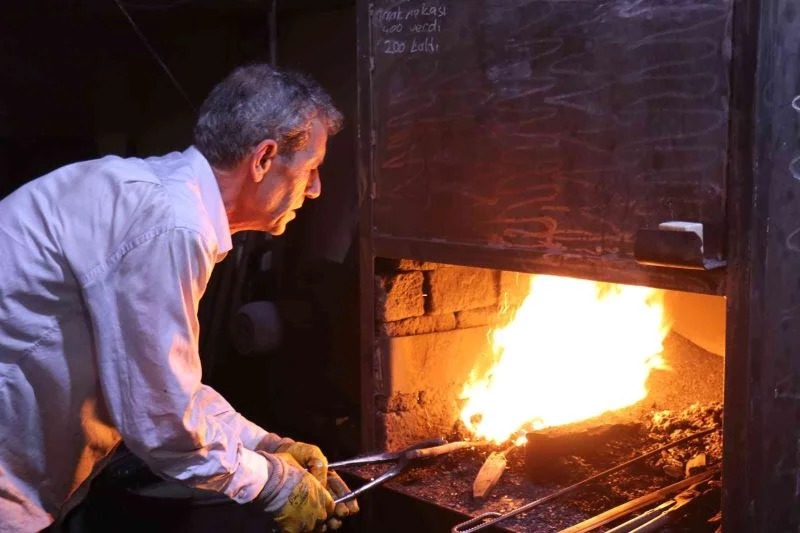 Malatya’da yaşayan 55 yaşındaki Aydın Bayyiğit, Bakırcılar Çarşısı’nda bulunan atölyesinde yaklaşık yarım asırdır bin 340 derecede erittiği demire şekil vererek ekmeğini kazanıyor.