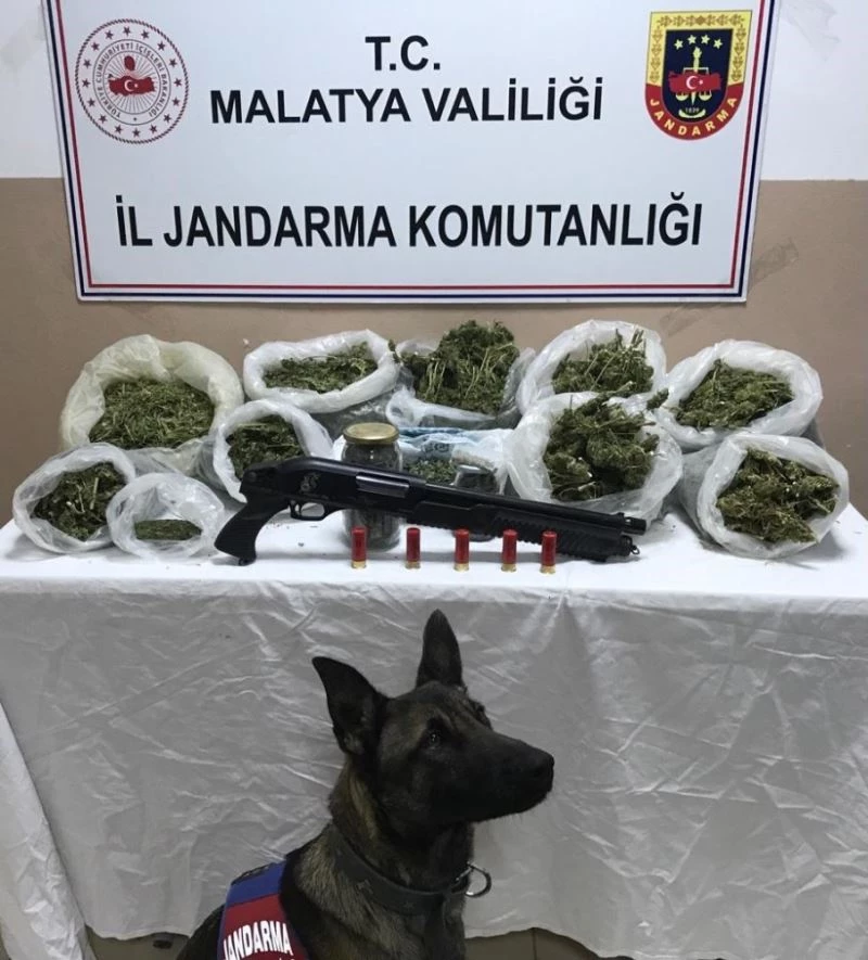 Malatya’da 5 kilo 300 gram kubar esrar maddesi ve 1 adet ruhsatsız av tüfeği ele geçirilirken, olayla ilgili bir zanlı gözaltına alındı.