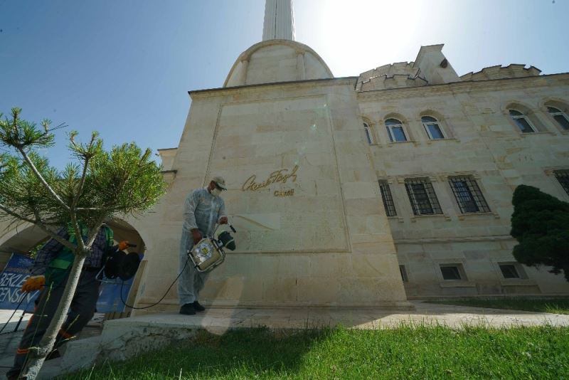 Malatya’da bu hafta Cuma namazının kılınacak camilerin avlu ve bahçeleri, dezenfekte edilerek temizleniyor.