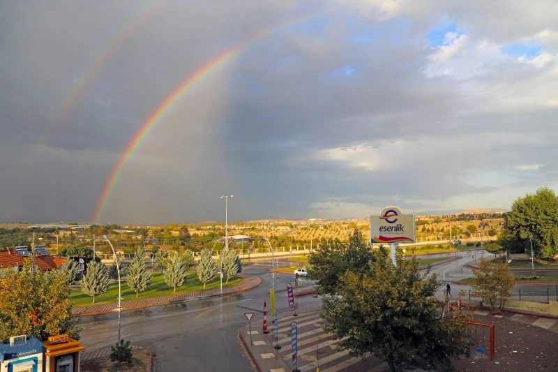 Malatya’da aniden yağan yağmurdan sonra "çifte gökkuşağı" oluşması dikkat çekti.