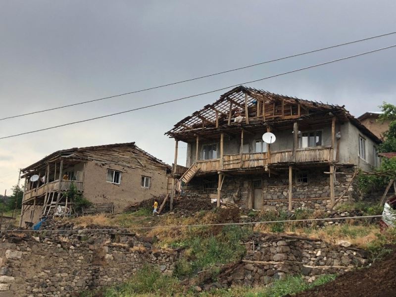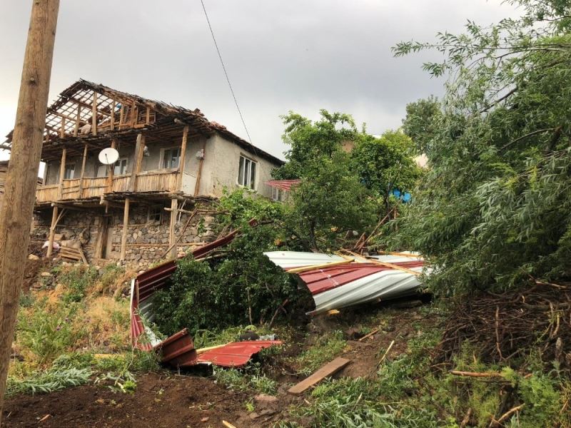 Malatya’nın Arguvan ilçesinde etkili olan fırtına nedeniyle evlerin çatısı uçtu, elektrik direkleri devrildi.