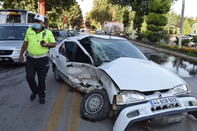 Kaza, İnönü Caddesi Büyükşehir Belediyesi önünde meydana geldi. Edinilen bilgilere göre kent merkezi istikametine seyir halinde olan Mehmet K. idaresindeki 44 ACB 992 plakalı Renault marka otomobile Büyükşehir Belediye otopark alanına dönüş yaptığı esnada karşı yönde gelen Mahmut Ü. yönetimindeki 34 NC 2283 plakalı Seat marka otomobil çarptı. Kazada sürücülerden Mehmet K. yaralandı.