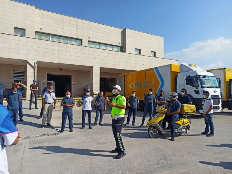 Malatya Emniyet Müdürlüğü trafik ekipleri tarafından, PTT araç ve motosiklet kuryelerine bilgilendirme faaliyeti yapılarak ve trafik eğitimi verildi. PTT Dağıtım Merkezi çalışanlarına yönelik trafik düzeni ve kuralları hakkında eğitim faaliyeti gerçekleştirildi.