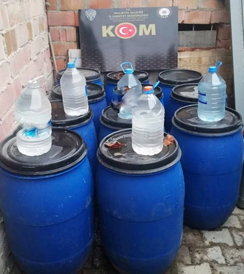 Edinilen bilgiye göre, Malatya Emniyet Müdürlüğü KOM Şube Müdürlüğü görevlileri tarafından yapılan çalışmalar neticesinde bir şahsın el yapımı boğma rakı imal ve satışı yaptığı bilgisi elde edildi. Şahsın ikametinde yapılan aramada, 5 adet 5 litrelik pet şişelerde 25 litre el yapımı içime hazır boğma rakı, 5 adet 100 litrelik varillerde toplam 500 litre boğma rakı hammaddesi olmak üzere toplam 525 litre el yapımı boğma rakı ele geçirildi. Şüpheli şahsa "5607 SKM" suçundan yasal işlem yapıldı.