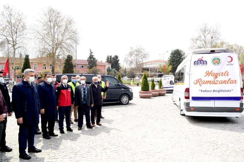 Büyükşehir Belediyesi önünde düzenlen törenin ardından, ihtiyaç sahibi ailelere sıcak iftar yemeği ulaştıracak olan servis araçları görevli oldukları mahallelere hareket ettiler.