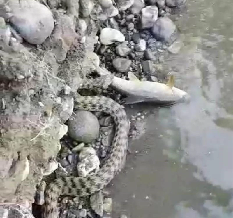 Malatya’nın Arapgir ilçesi’de bir yılanın balık avladığı an kameraya yansıdı.