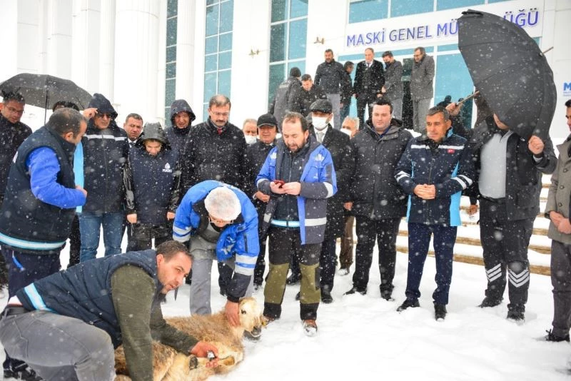 Malatya Büyükşehir Belediyesi Su ve Kanalizasyon İdaresi (MASKİ) Genel Müdürlüğü tarafından kar yağışı nedeniyle ‘şükür kurbanı’ kesilerek, karlar su kaynağı olacağı için dua ve şükür edildi.