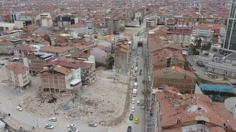Kahramanmaraş merkezli depremlerden ağır hasar alan Malatya’da enkazlar kaldırıldıkça oluşan boşluk havadan görüntülendi.