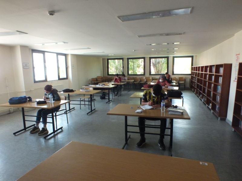 Muş’un Malazgirt ilçesindeki öğrenciler, üniversite sınavına Malazgirt Halk Kütüphanesinde hazırlanıyor.